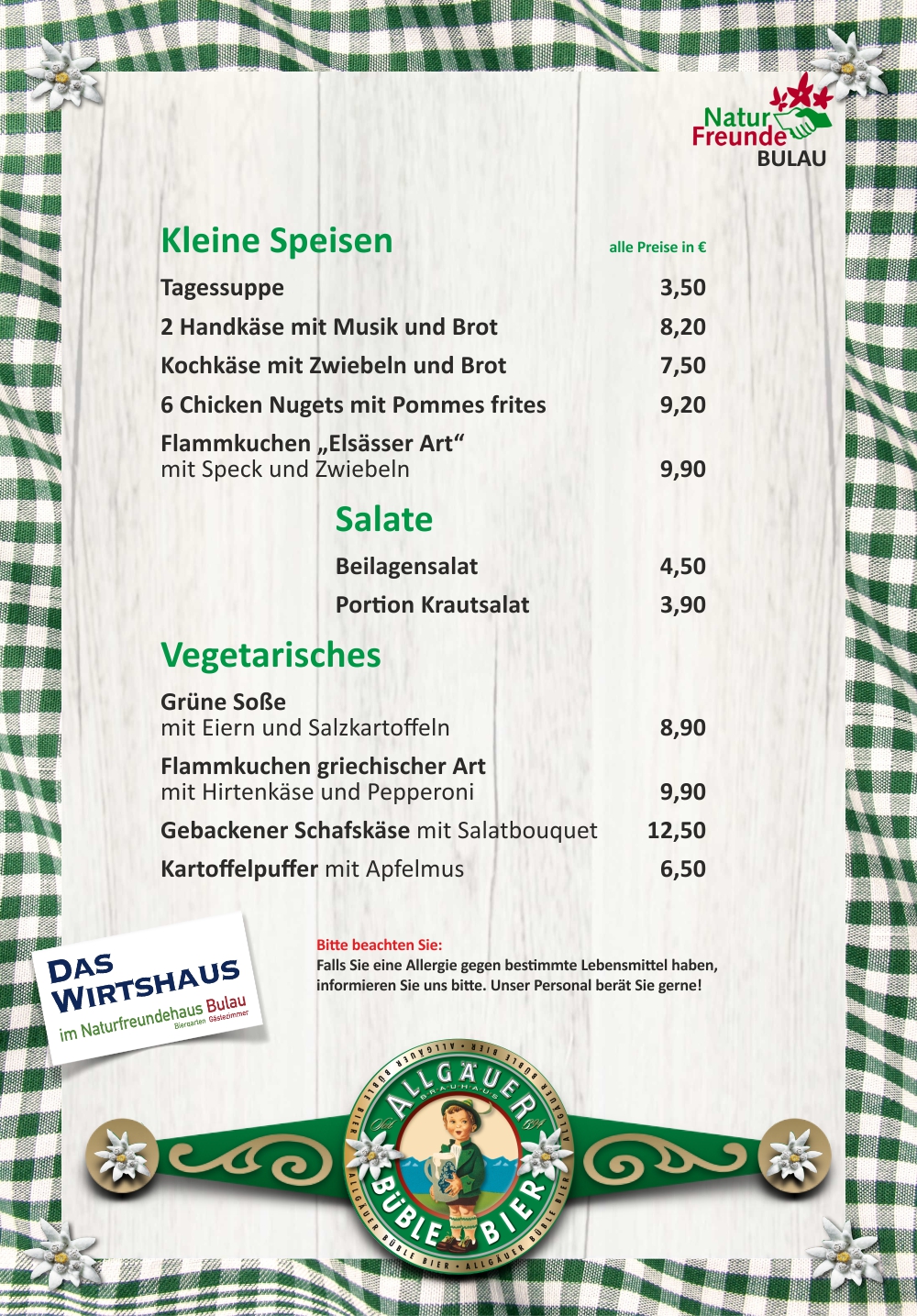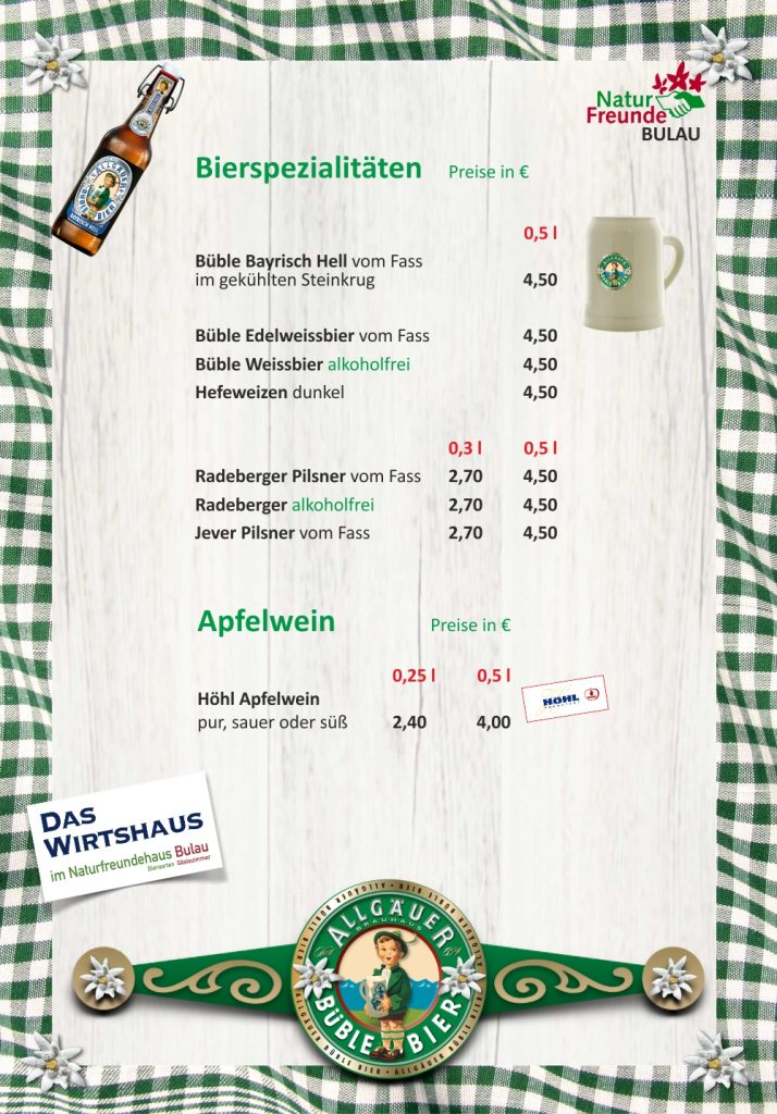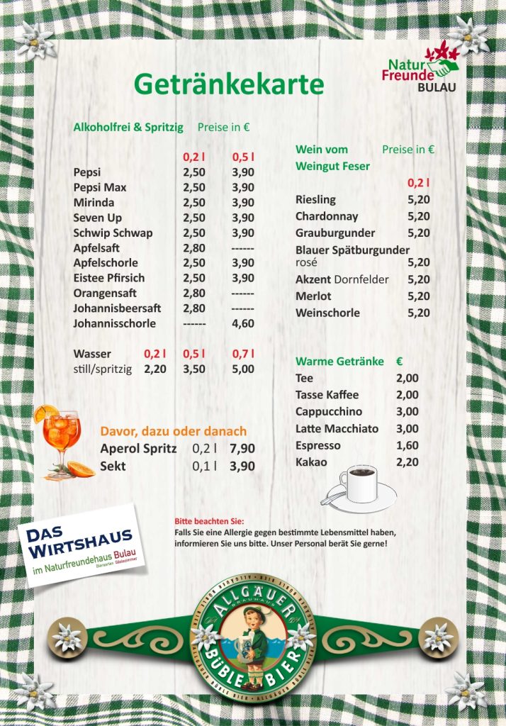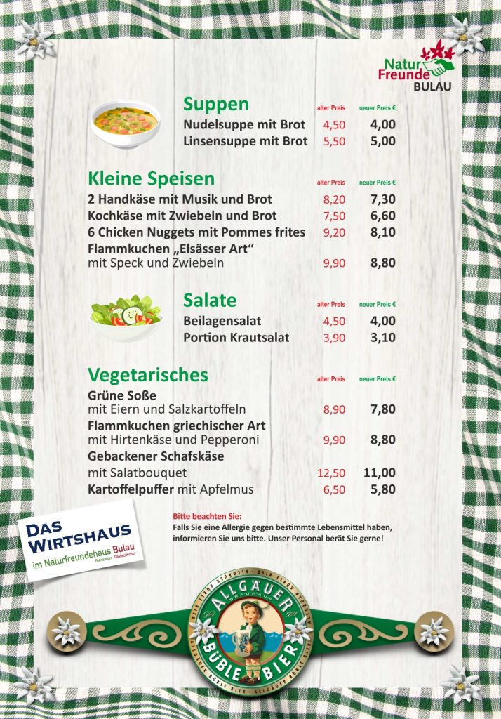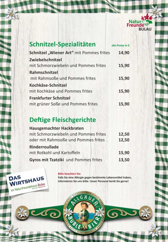 Unsere Speisekarte – da ist für Jeden was dabei.