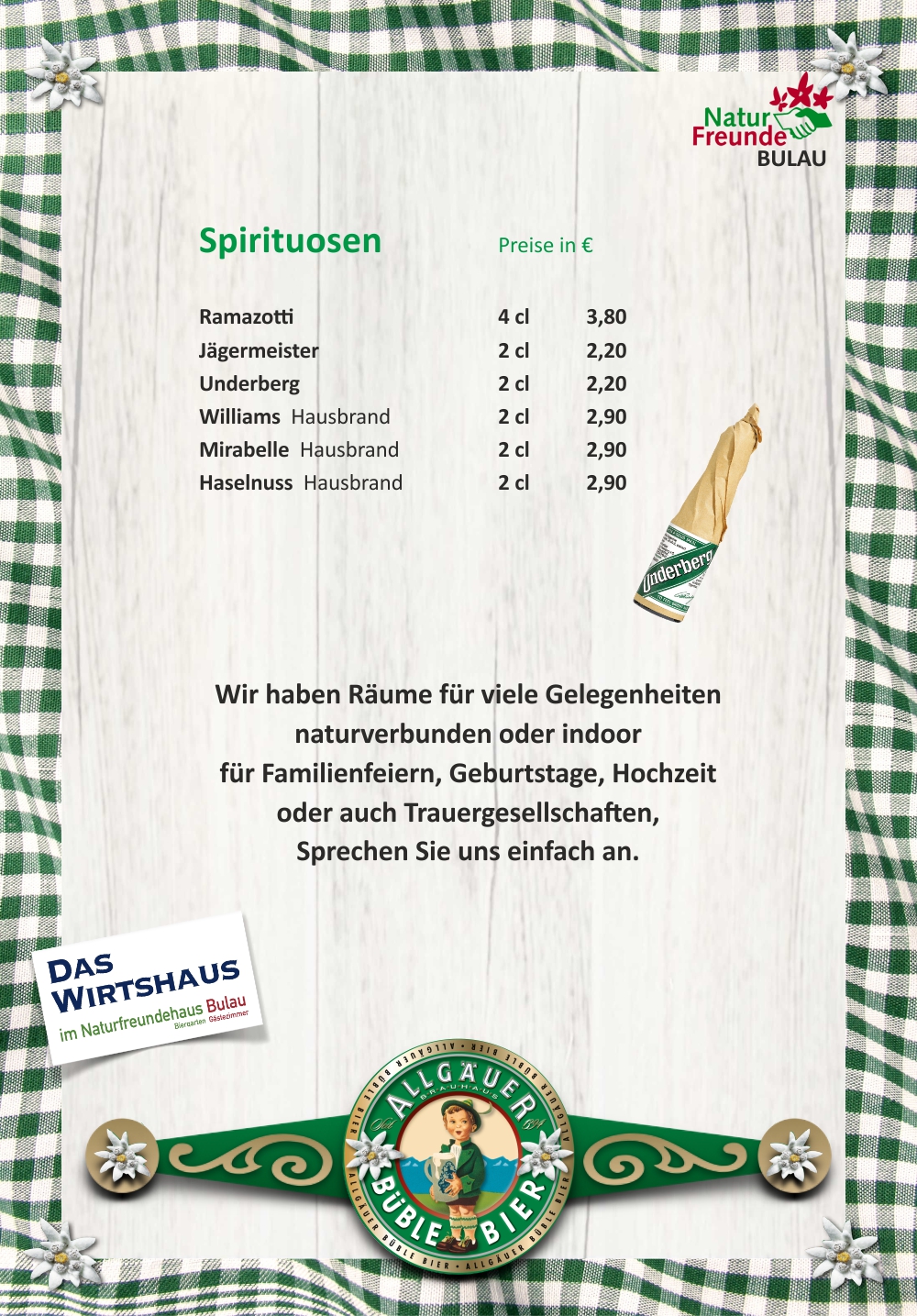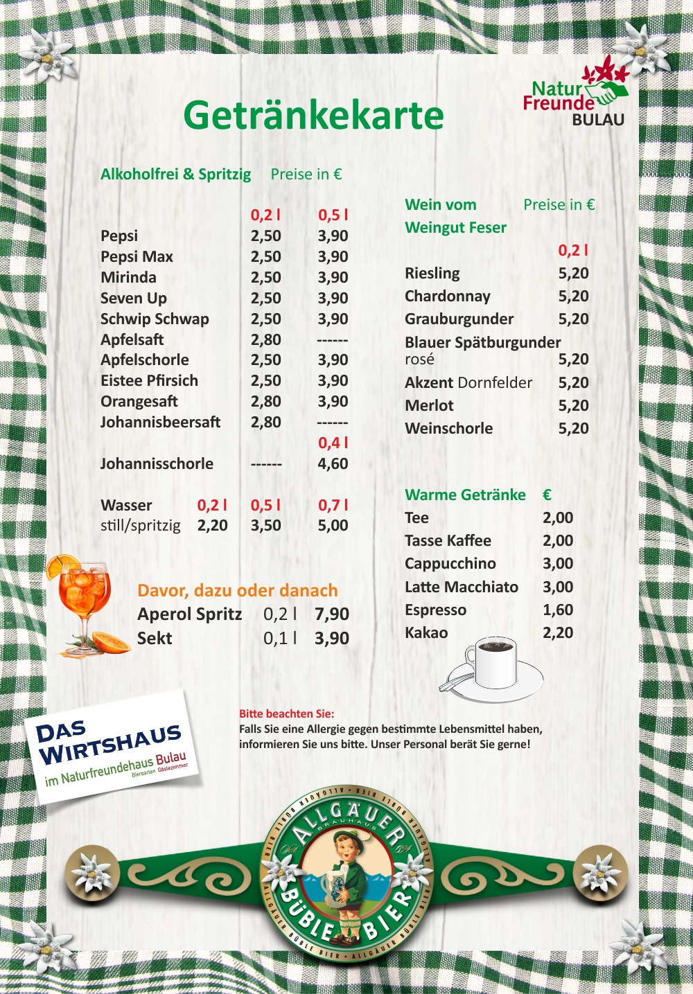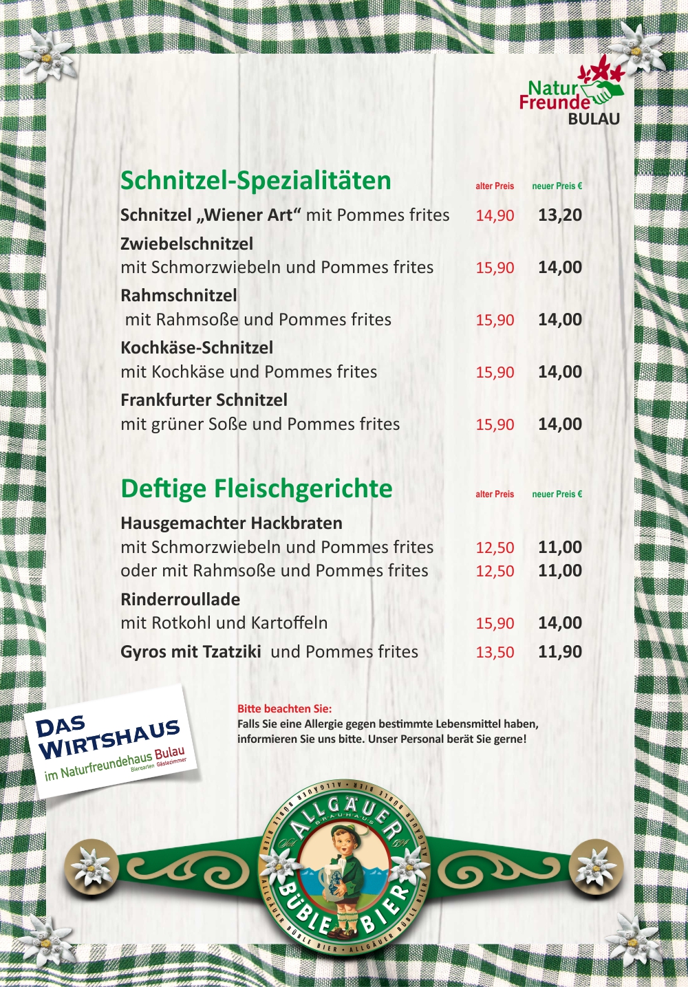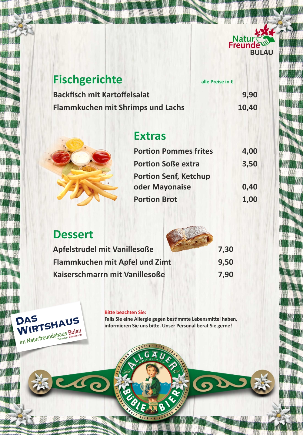 Unsere Speisekarte – da ist für Jeden was dabei.